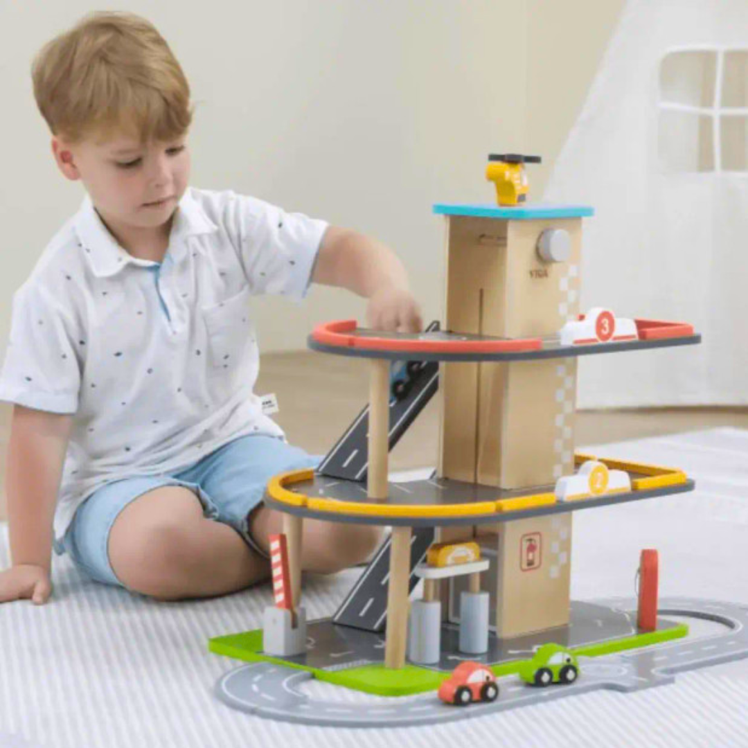 The 3 Level Parking & Fuel Station is an all-in-one stop for the little wooden cars and helicopter!