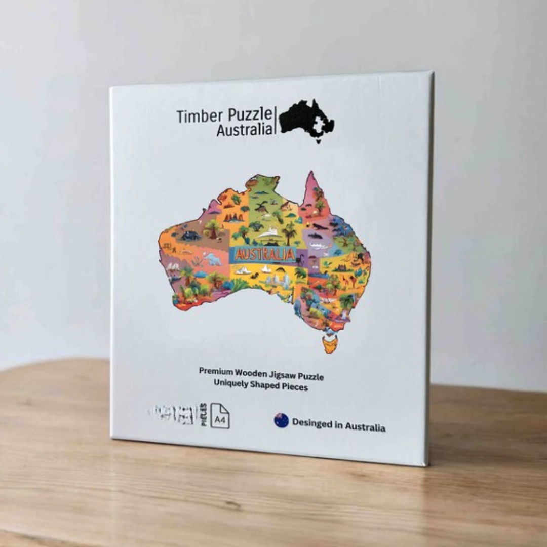 Handcrafted from sustainable HDF timber and printed with water-based colours, this A4-sized puzzle is an eco-friendly addition to any playroom. The set includes 132 timber puzzle pieces, an instruction manual, a drawstring storage bag, and a sturdy cardboard box for easy clean-up and storage.