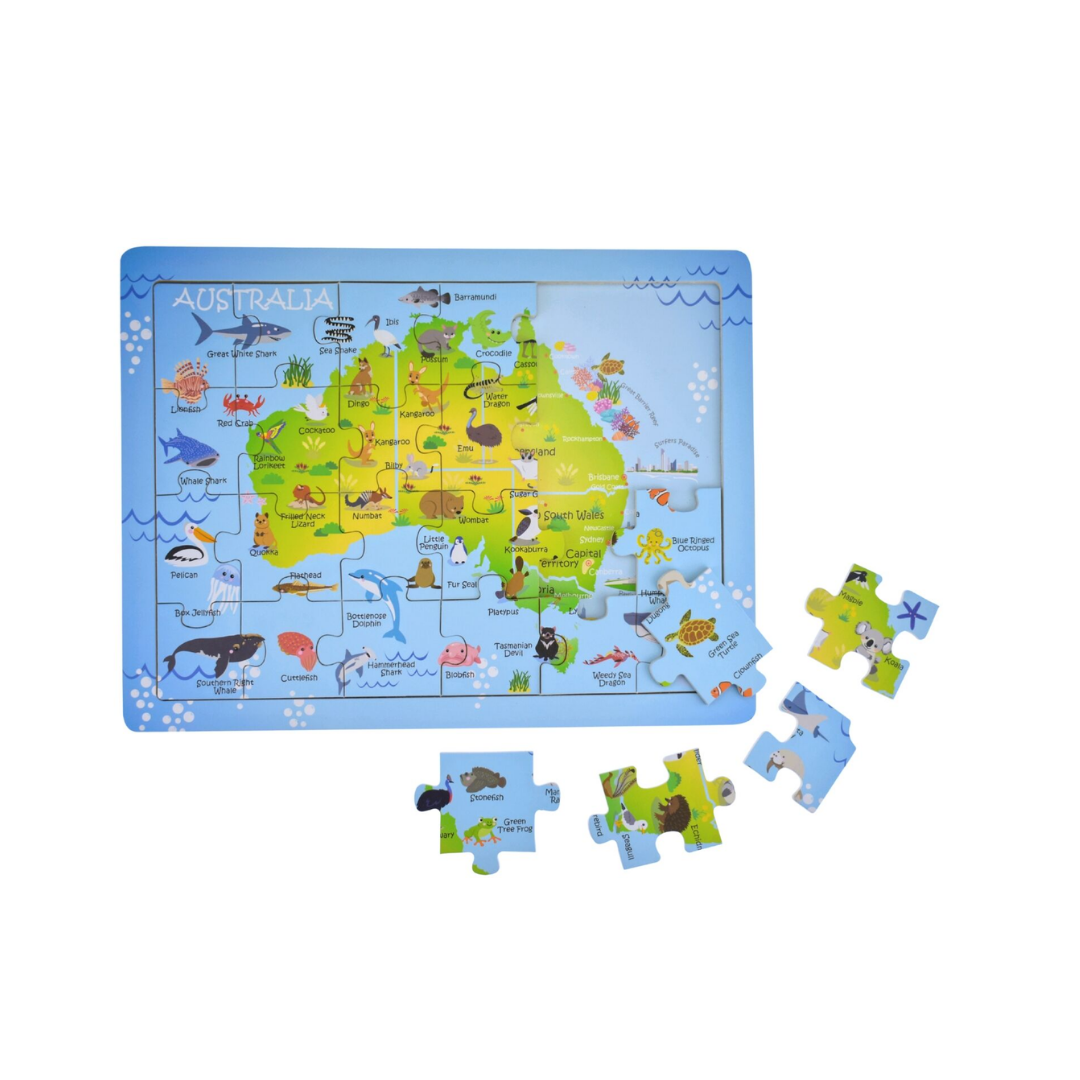 Children will love piecing together the colourful map, spotting native animals, and naming landmarks as they play. Each piece fits snugly into the wooden tray, making it easy to assemble and store. This engaging activity encourages interactive play with parents or friends while teaching geography and nature in a fun, hands-on way.