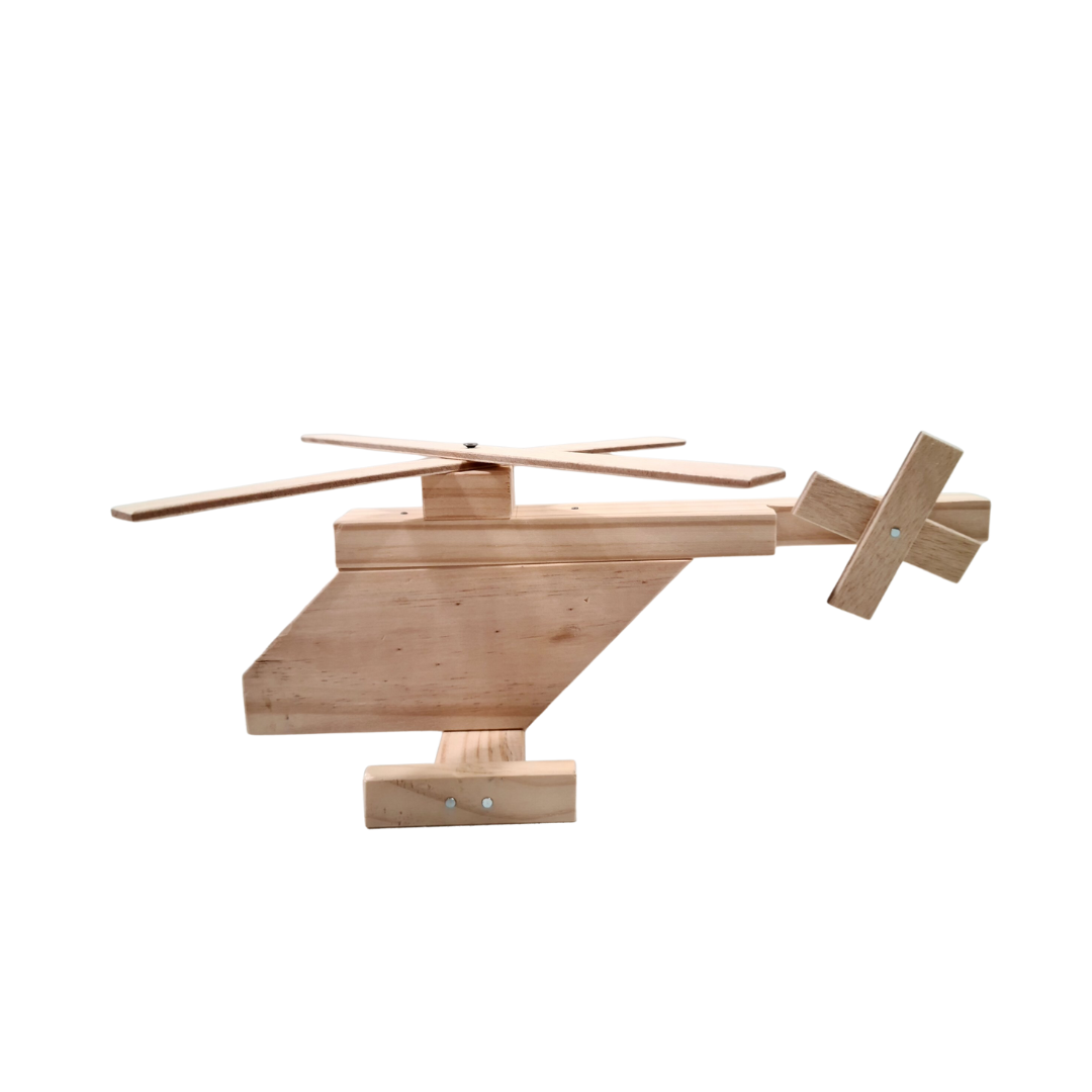 Creating your own wooden helicopter is perfect occupation for all age groups, from children in school holidays to the elderly looking for a hobby. To make it more personalised, try painting or staining the pieces before constructing the helicopter. Develop hand-eye coordination and fine motor skill development.