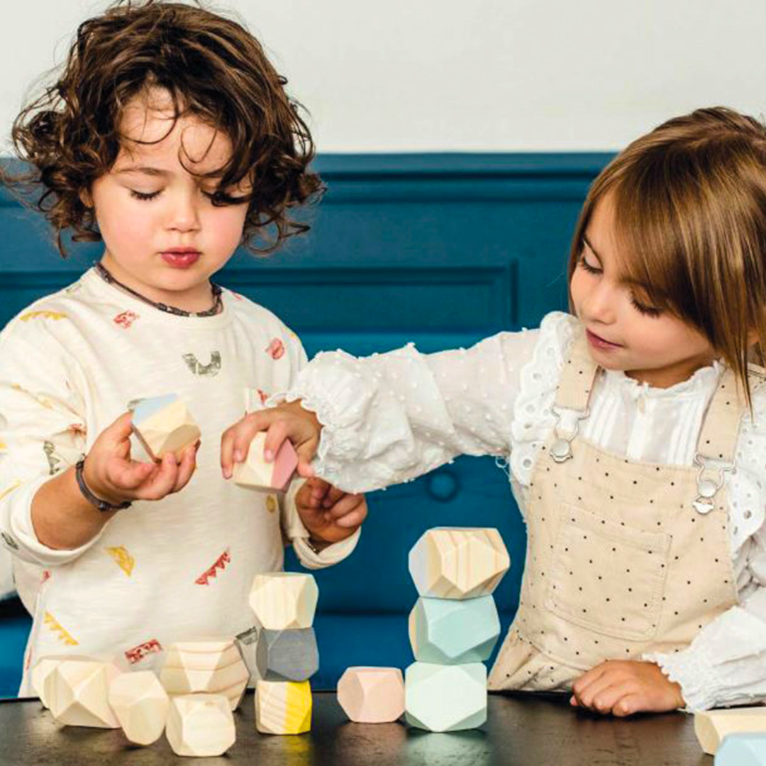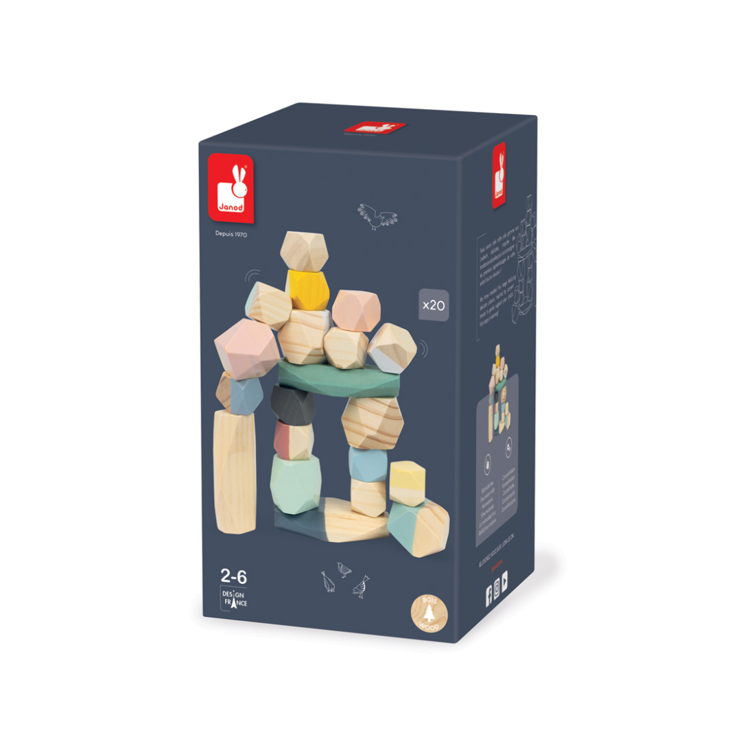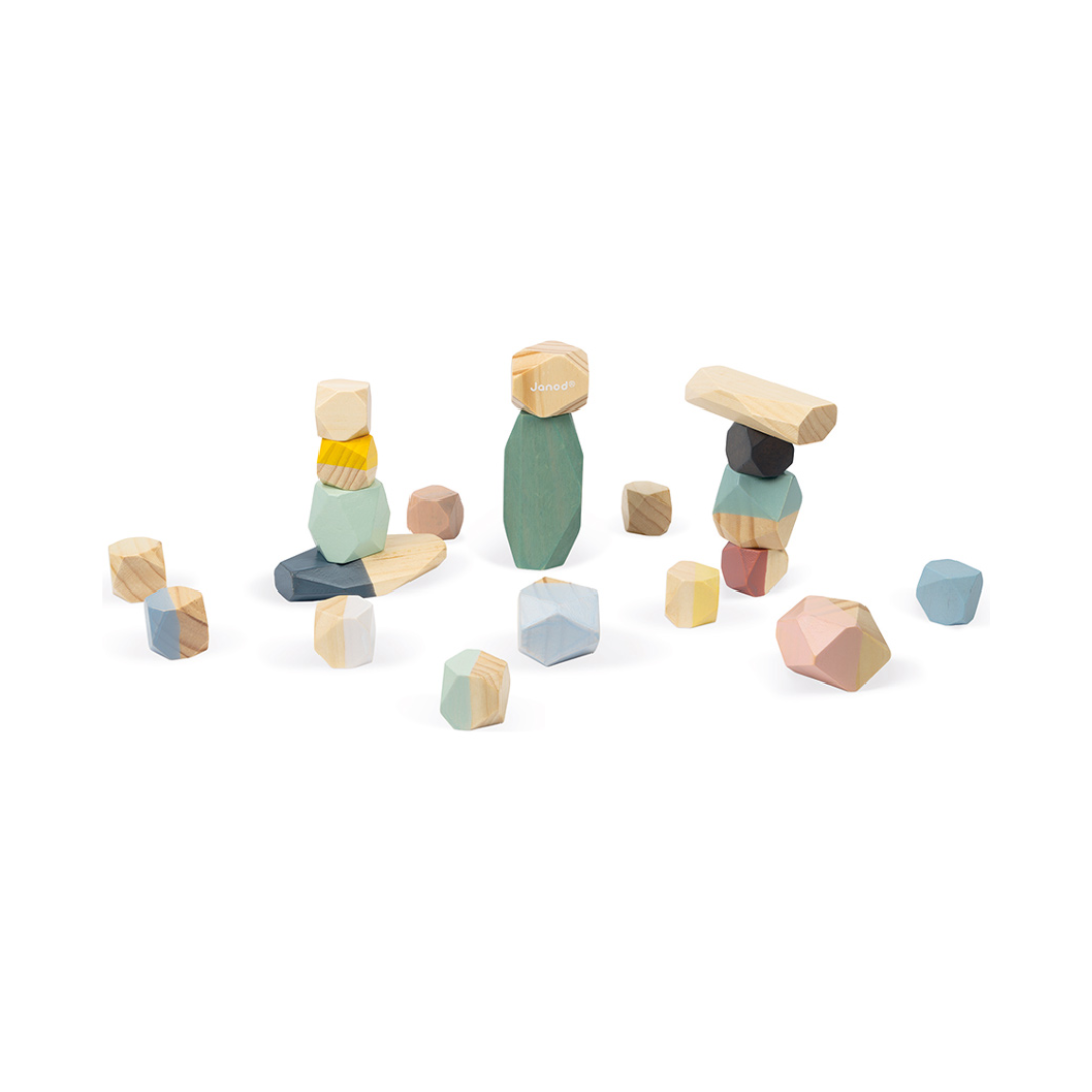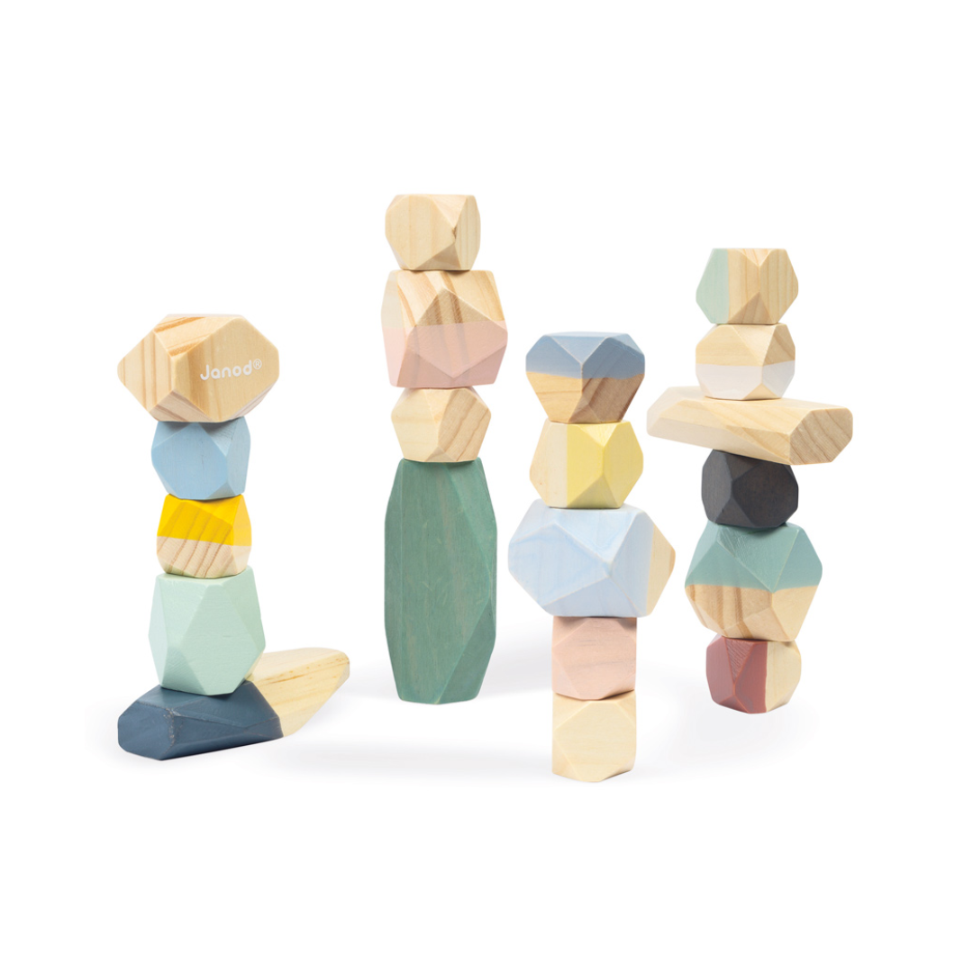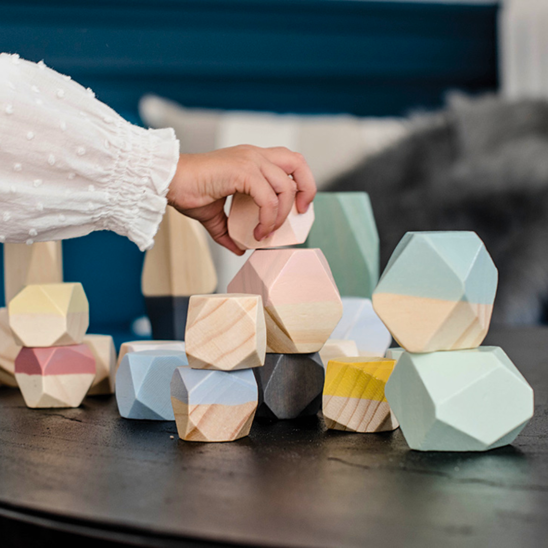 These Cocoon Wooden Stacking Stones come in a variety of shapes and sizes, giving the appearance of faceted stones, this encourages open ended play and the development of fine motor skills in your children.