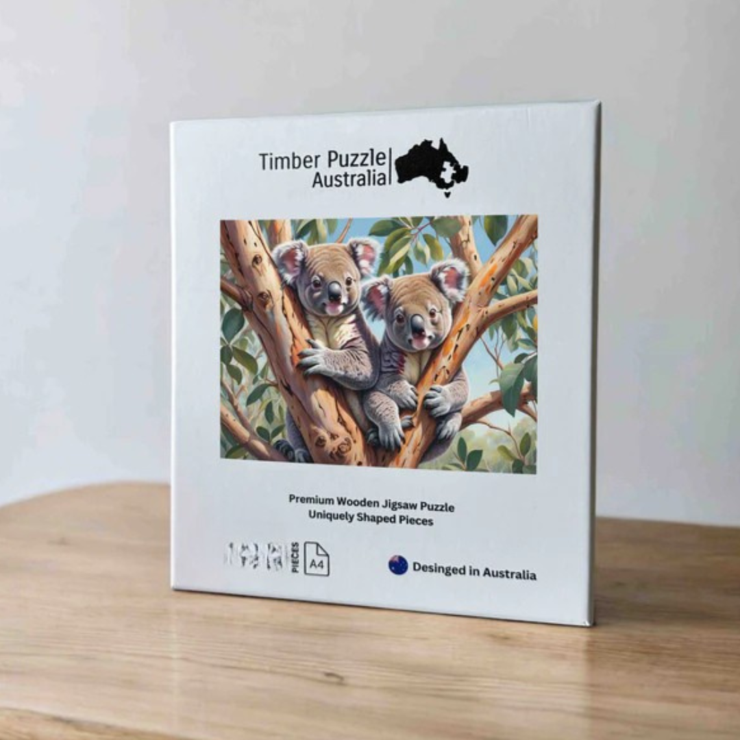 Unlike traditional jigsaw puzzles, every piece in this puzzle is double-sided and uniquely shaped, including charming animal-shaped pieces. Piece together the 200 unique pieces to reveal two wrinkly, fluffy koalas relaxing in the bush. Once completed, frame and display your Cuddly Koalas 200-piece Timber Puzzle to share the beauty of this iconic Australian wildlife scene with friends and family.