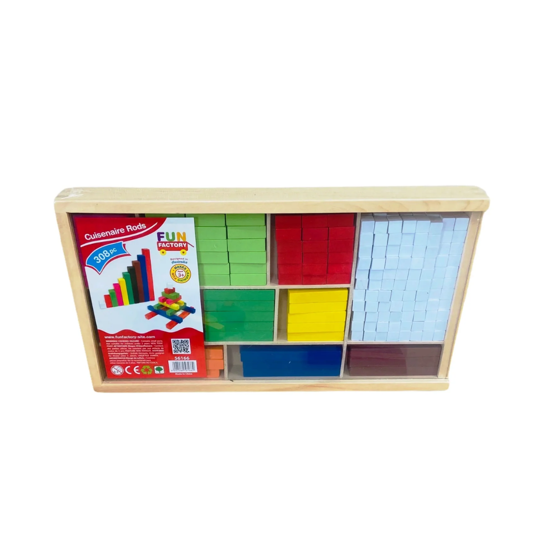 Each rod symbolises different units. The 308 Piece Set includes 176 White pieces, 6 Brown Pieces, 6 Blue Pieces, 6 Orange Pieces, 10 Yellow Pieces, 10 Dark Green Pieces, 10 Black Pieces, 36 Red Pieces, 36 Light Green Pieces and 12 Pink Pieces.