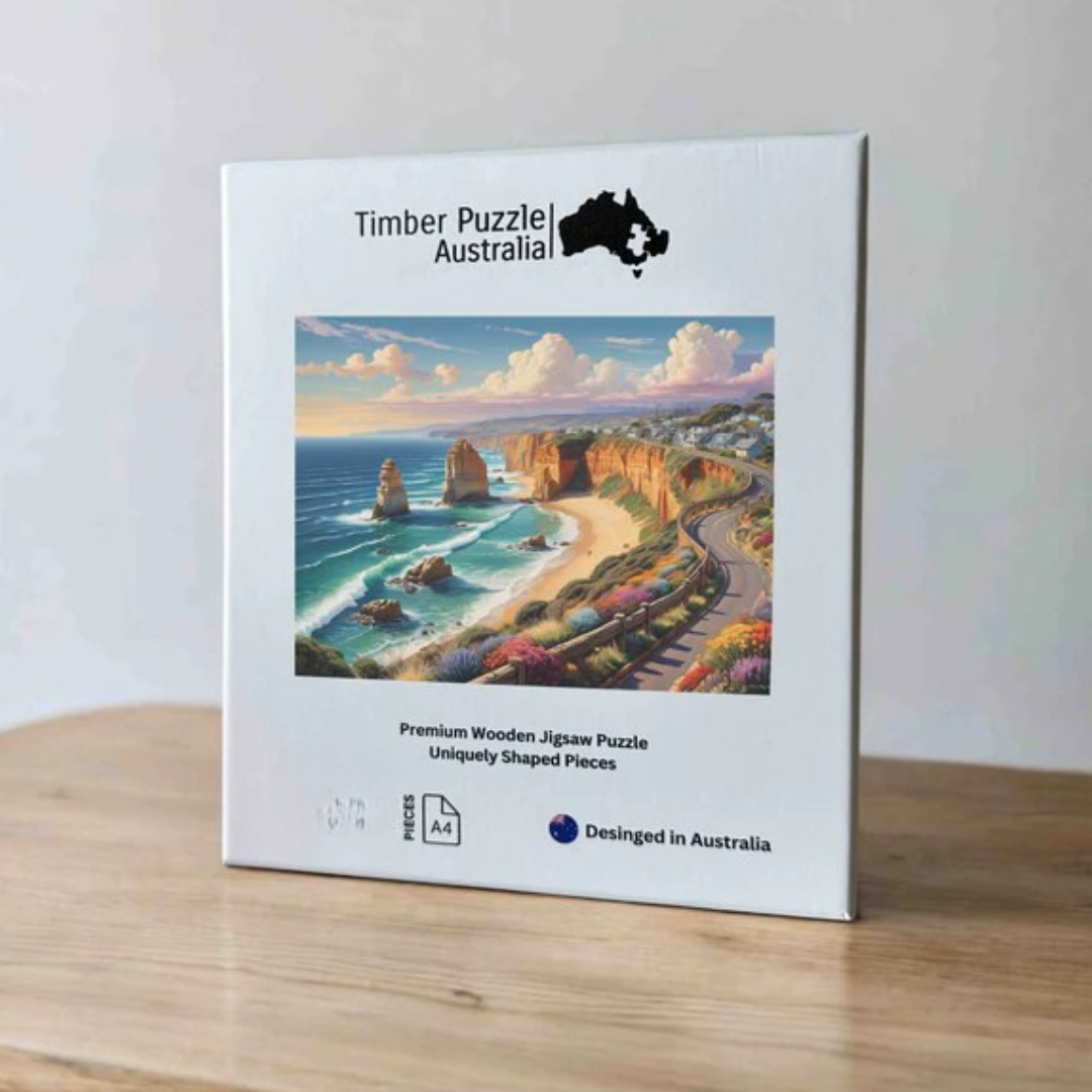 The Great Ocean Road 200Pc Timber Puzzle showcases one of Australia’s most breathtaking natural wonders—the Twelve Apostles along the stunning Ocean Road coastline. With lapping waves, soft pastel clouds, and scenic Australian landscapes, this puzzle will make you dream of visiting this iconic destination.
