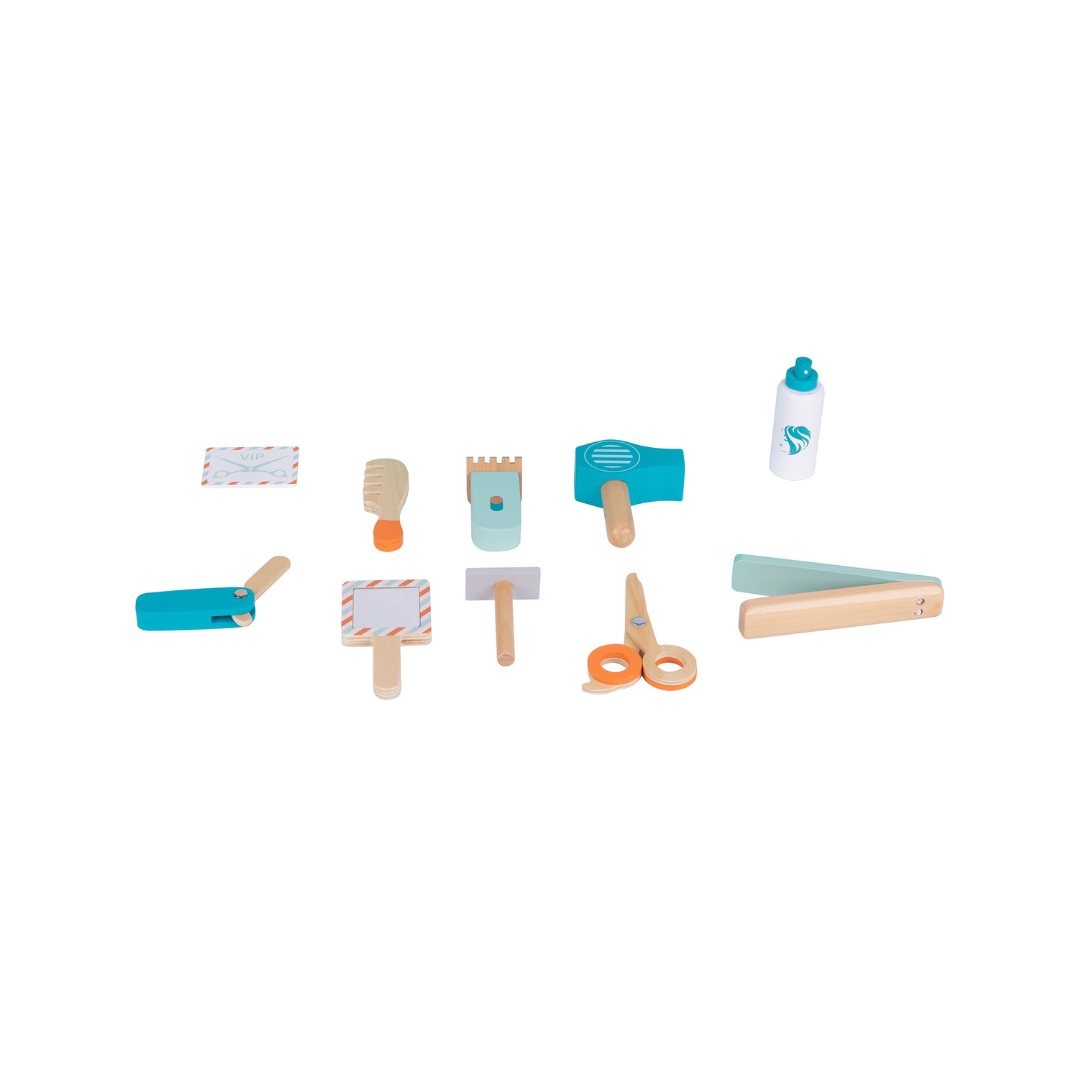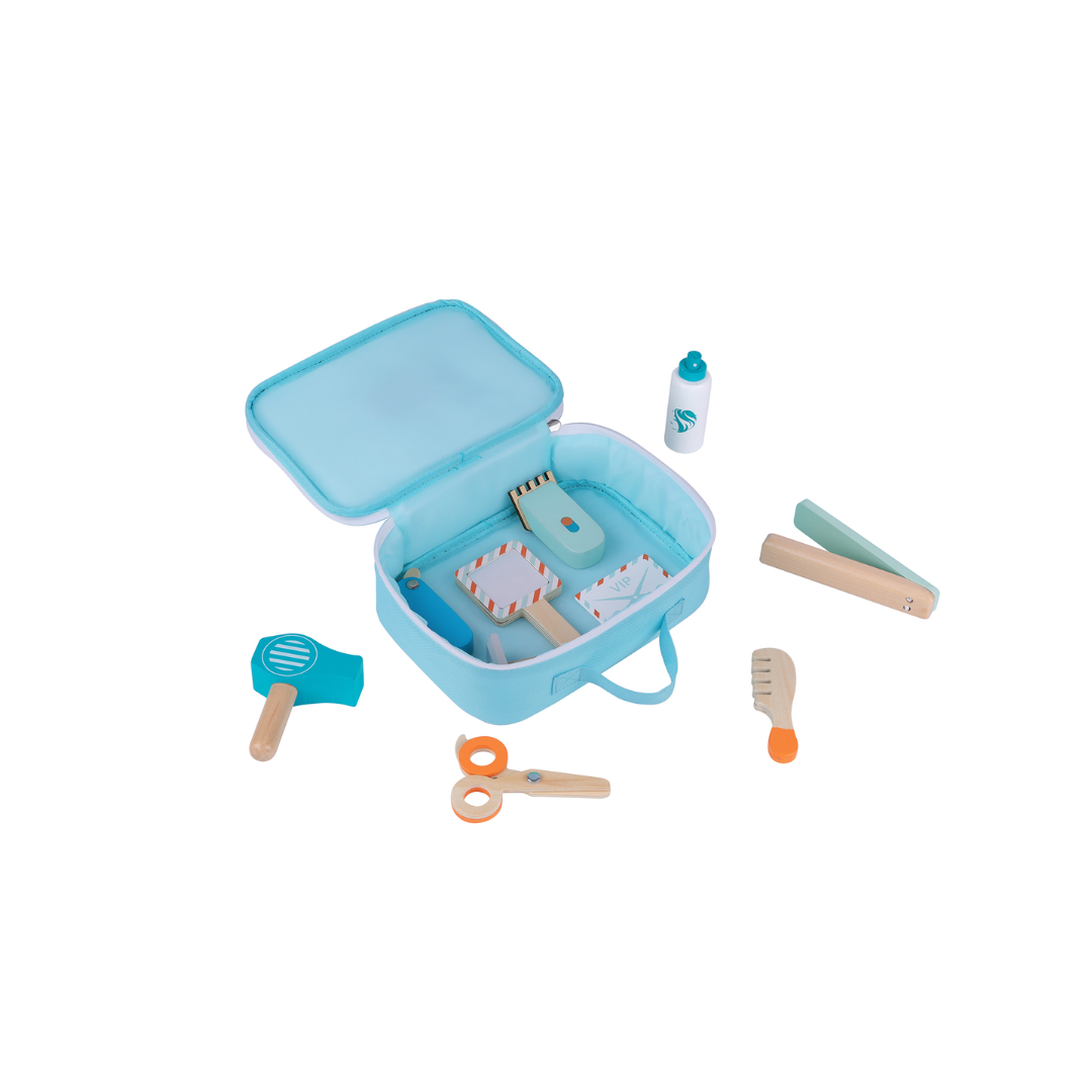 All the tools in this set are made from sustainable timber, and packed neatly in a durable fabric carry case. Painted in child-safe, non-toxic paints using high quality materials. Great for early learning centres, budding hairdresser’s birthday presents and the home playroom.