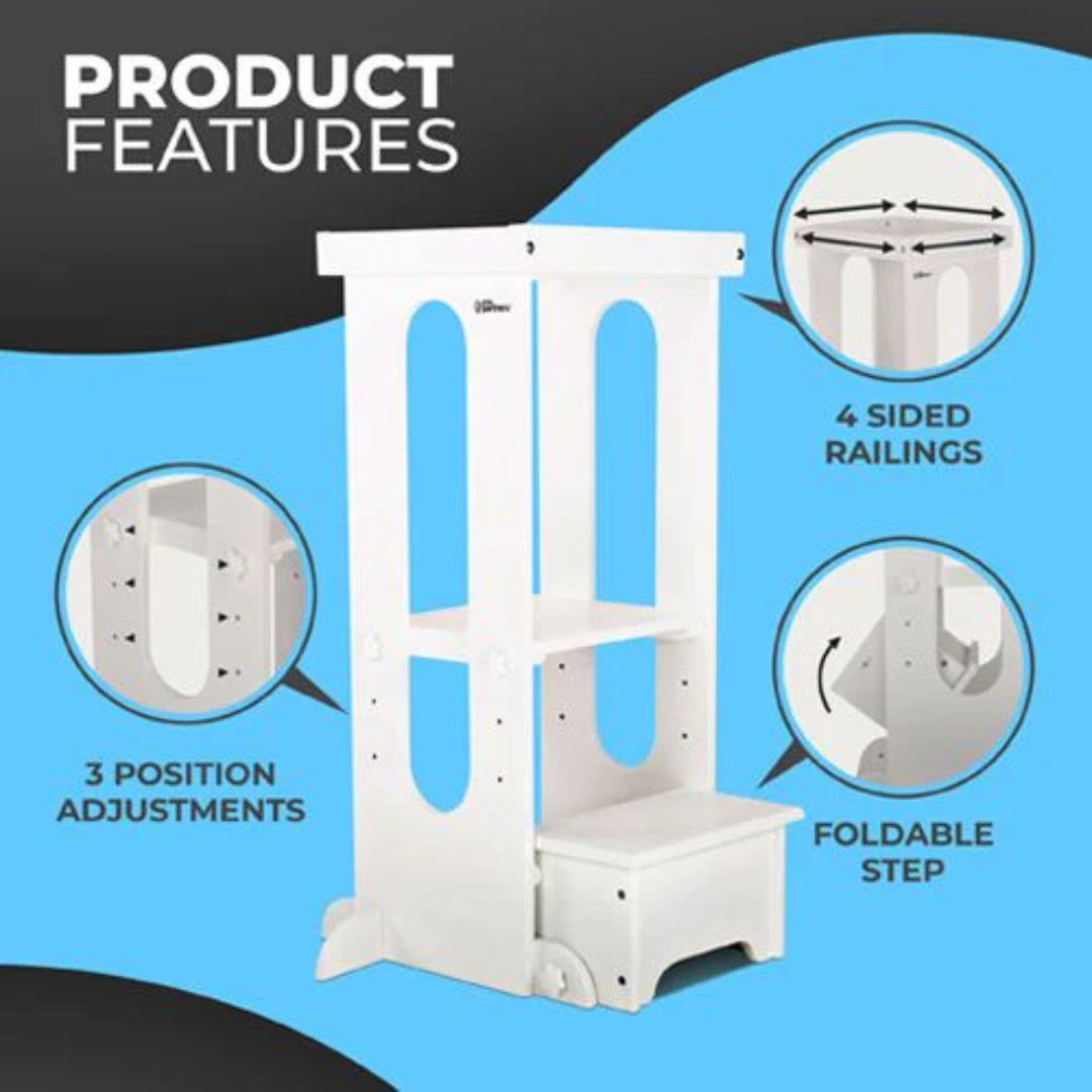 3 height positions to keep them safe and included in everyday kitchen activities as they grow.