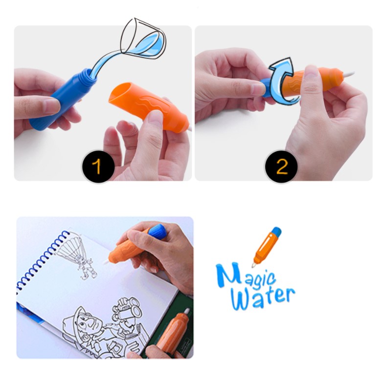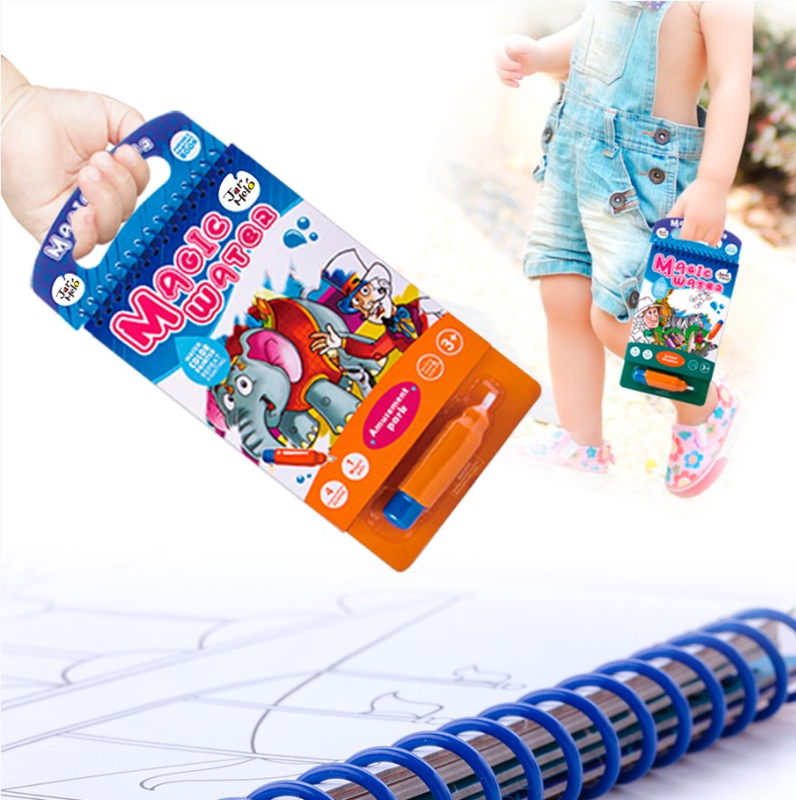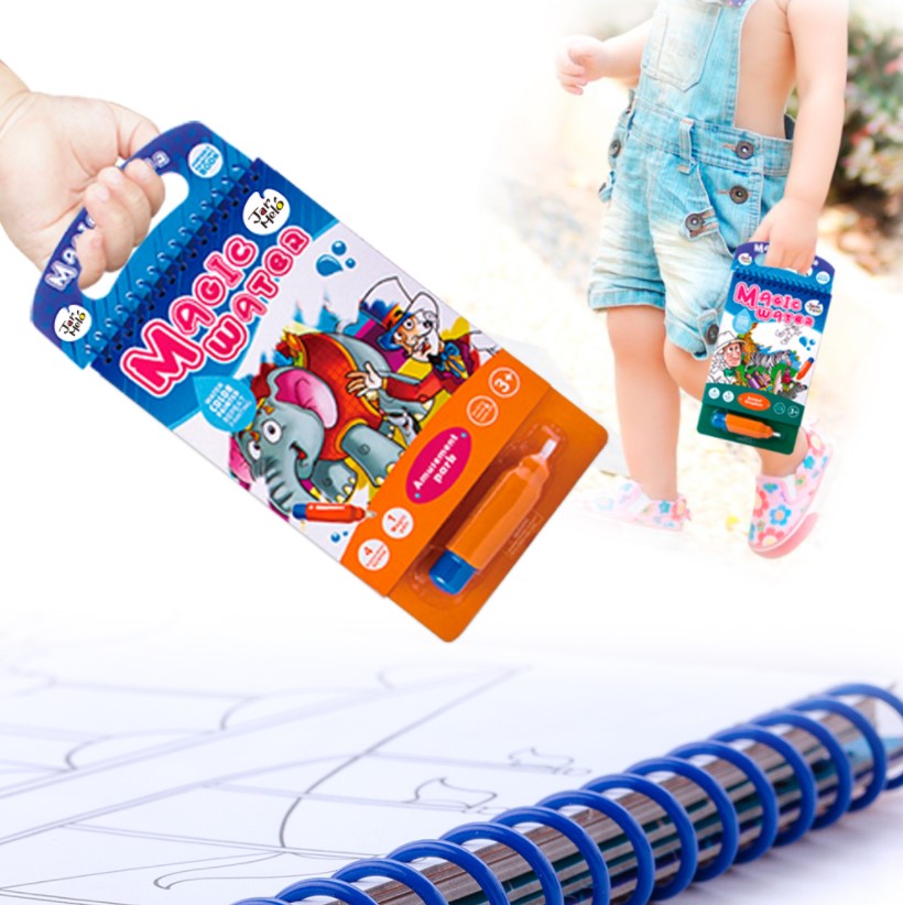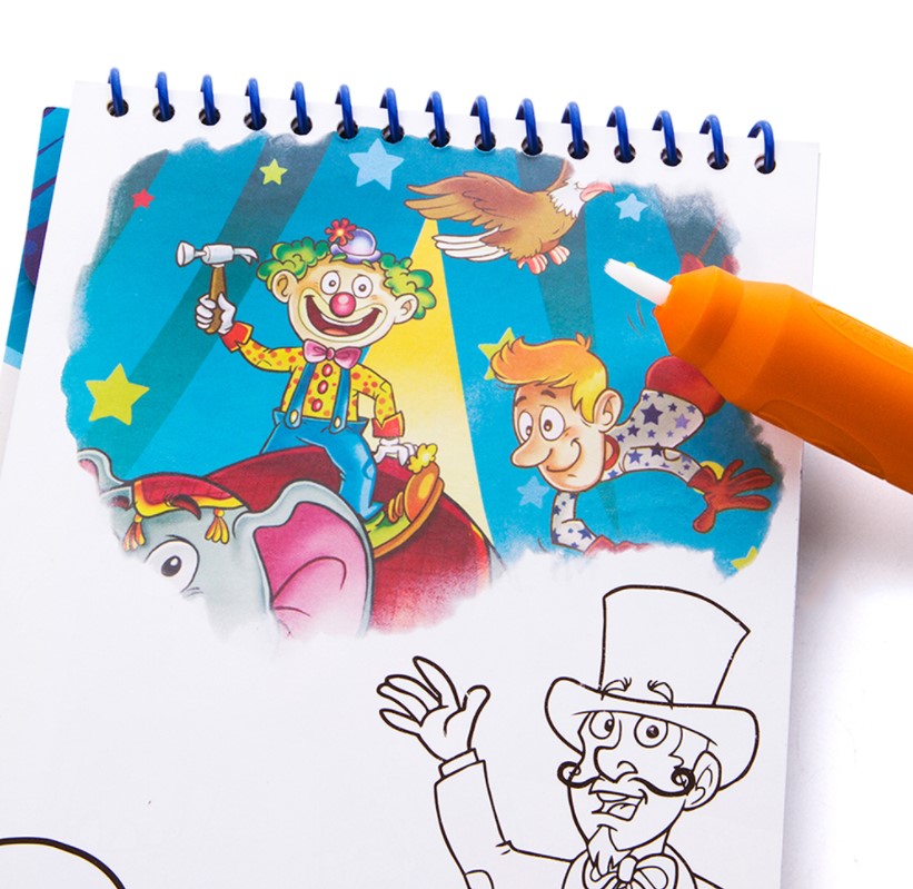 Our Magic Water Colouring Pad -Amusement Park has reusable pages with simple line drawings. Fill the chunky pen with water and let the magic happen.