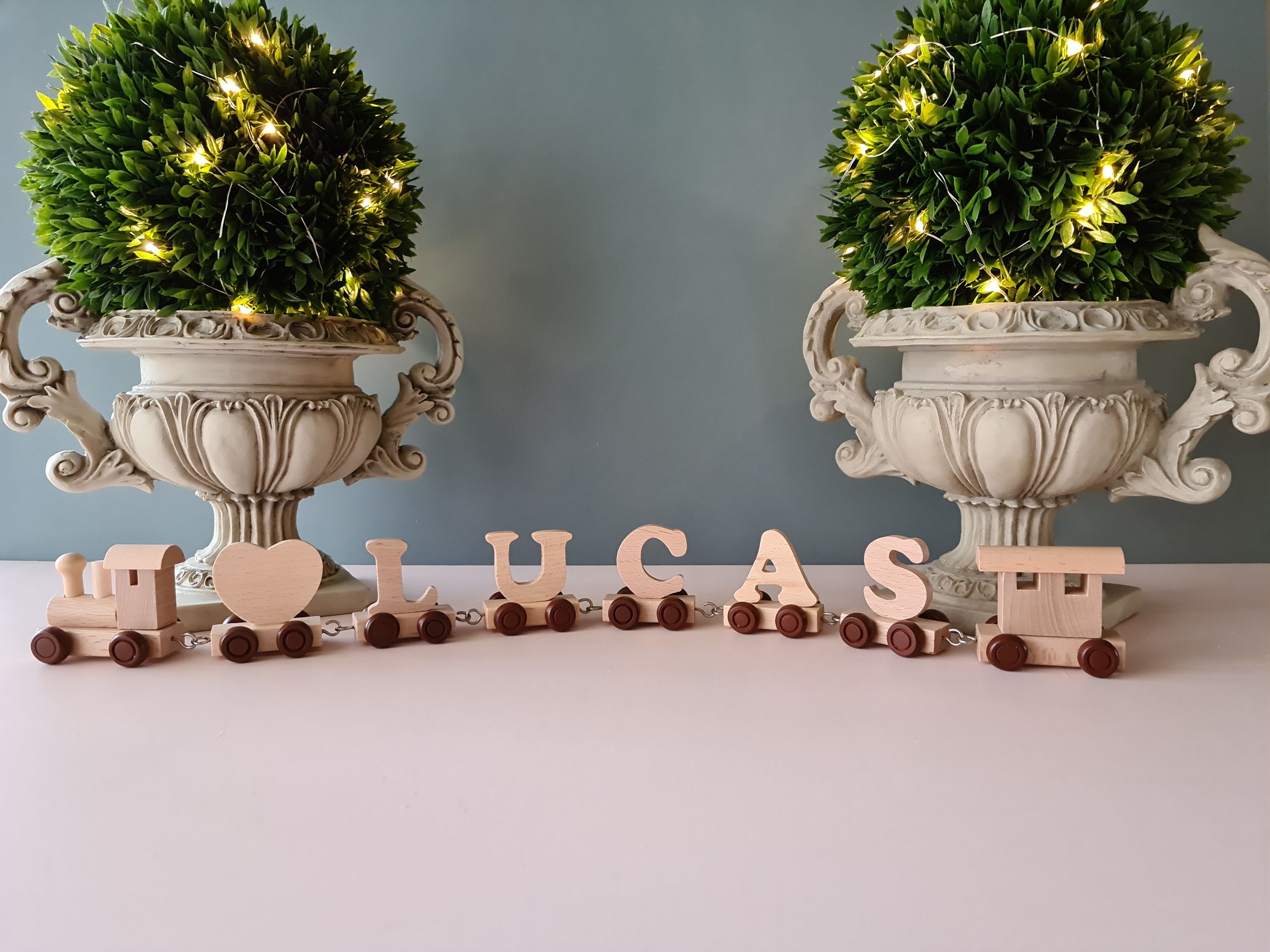 Our PERSONALISED WOODEN NAME TRAIN looks stunning as a decorative item, but is also great fun to play with.