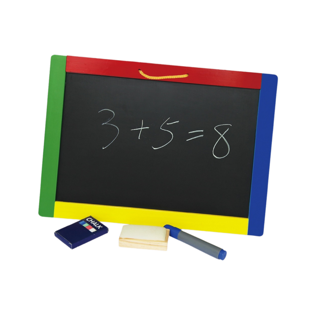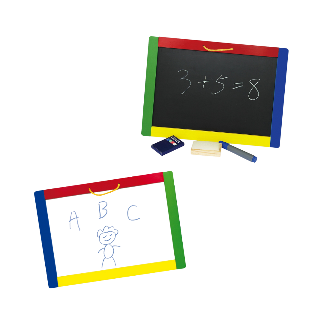 Our Reversible Magnetic Whiteboard & Blackboard is a double sided whiteboard and blackboard. Includes coloured chalk, duster and whiteboard marker.