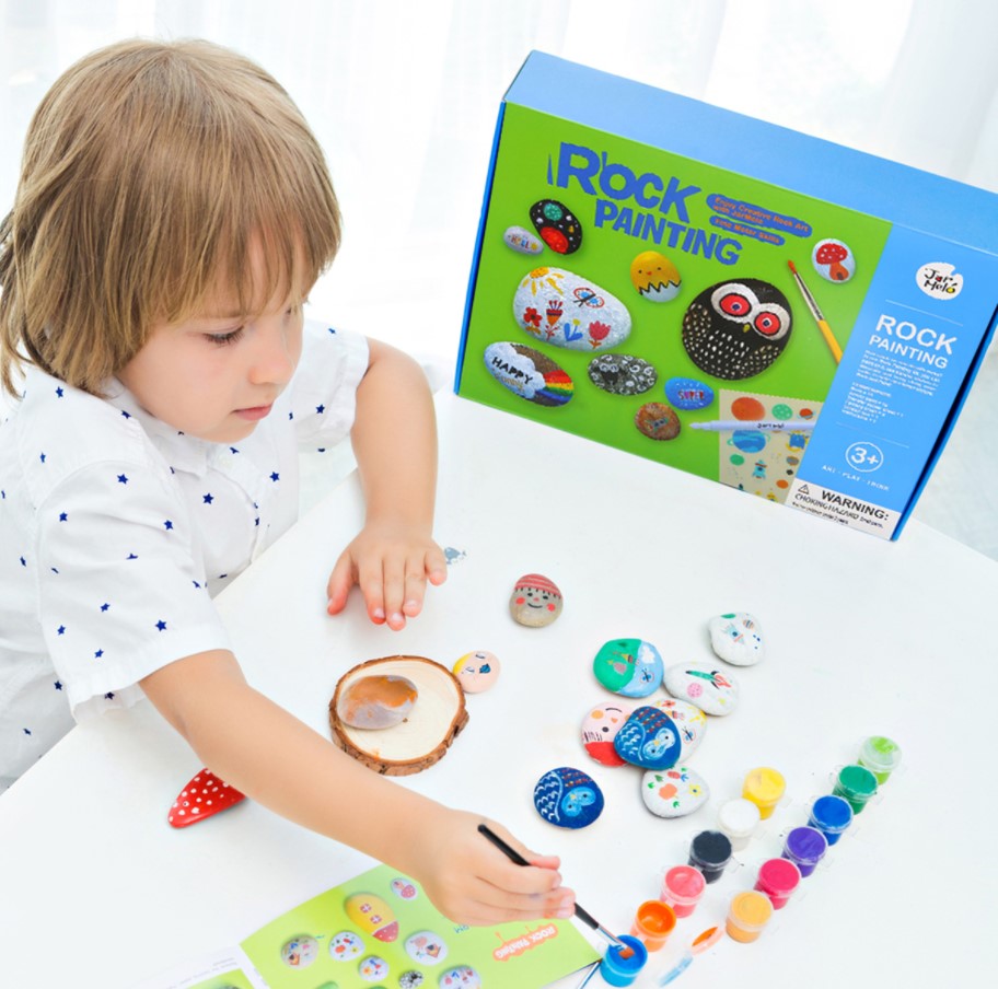 Rock Painting Kit is a fun way for children to keep themselves entertained, by painting pictures on rocks with the paint provided. You will find all the materials are in the kit. Start painting now and create a variety of rocks for a small rock garden, or to use as paper weights in the office.  This type of activity helps children express themselves through the power of creativity, and gives them more confidence.