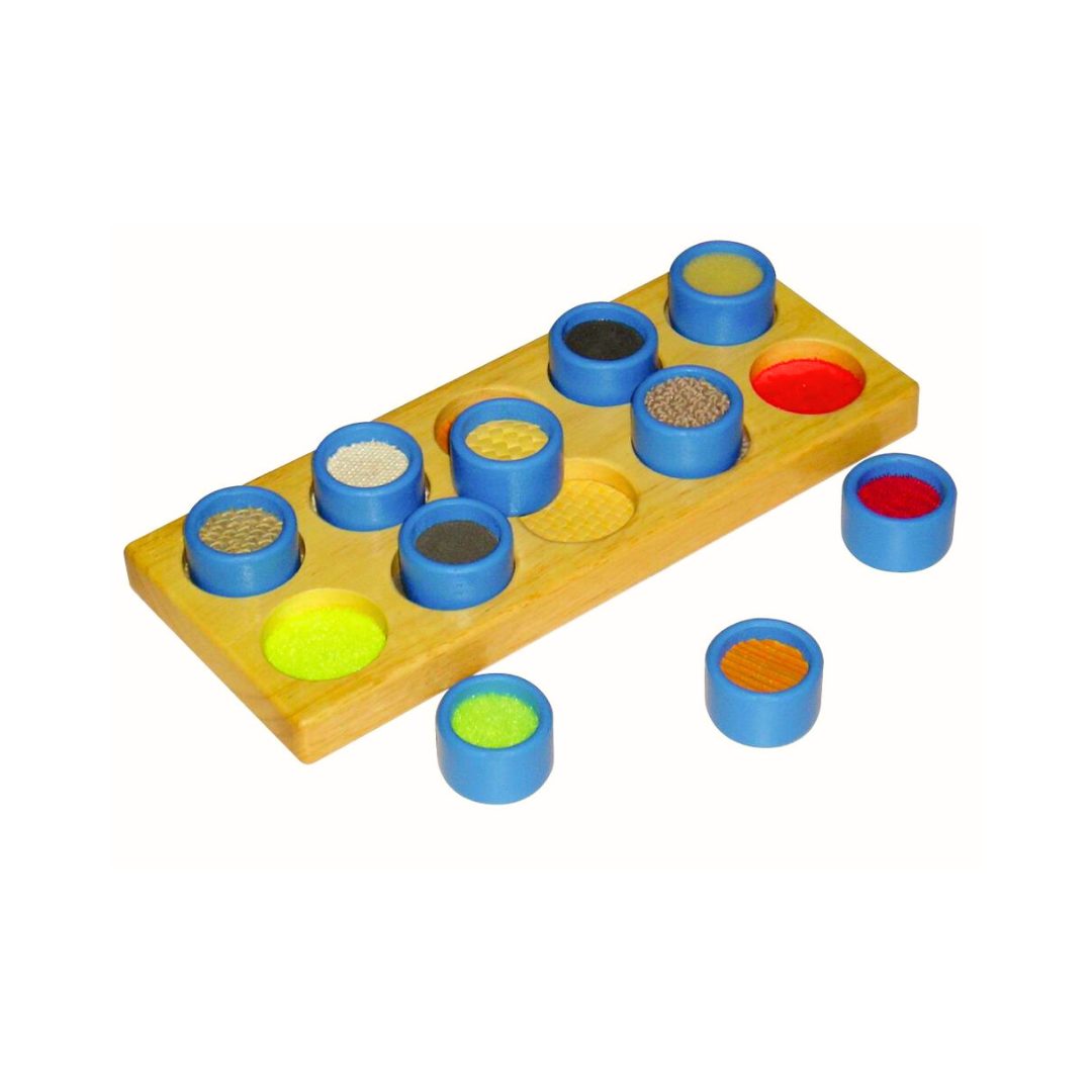 The Sensory Touch and Match Board provides a variety of interesting textures to touch and explore. There are 10 removable pieces that correspond in texture to pieces on the board. Remove and mix up the top pieces then your child can match them up with the textured piece on the base.