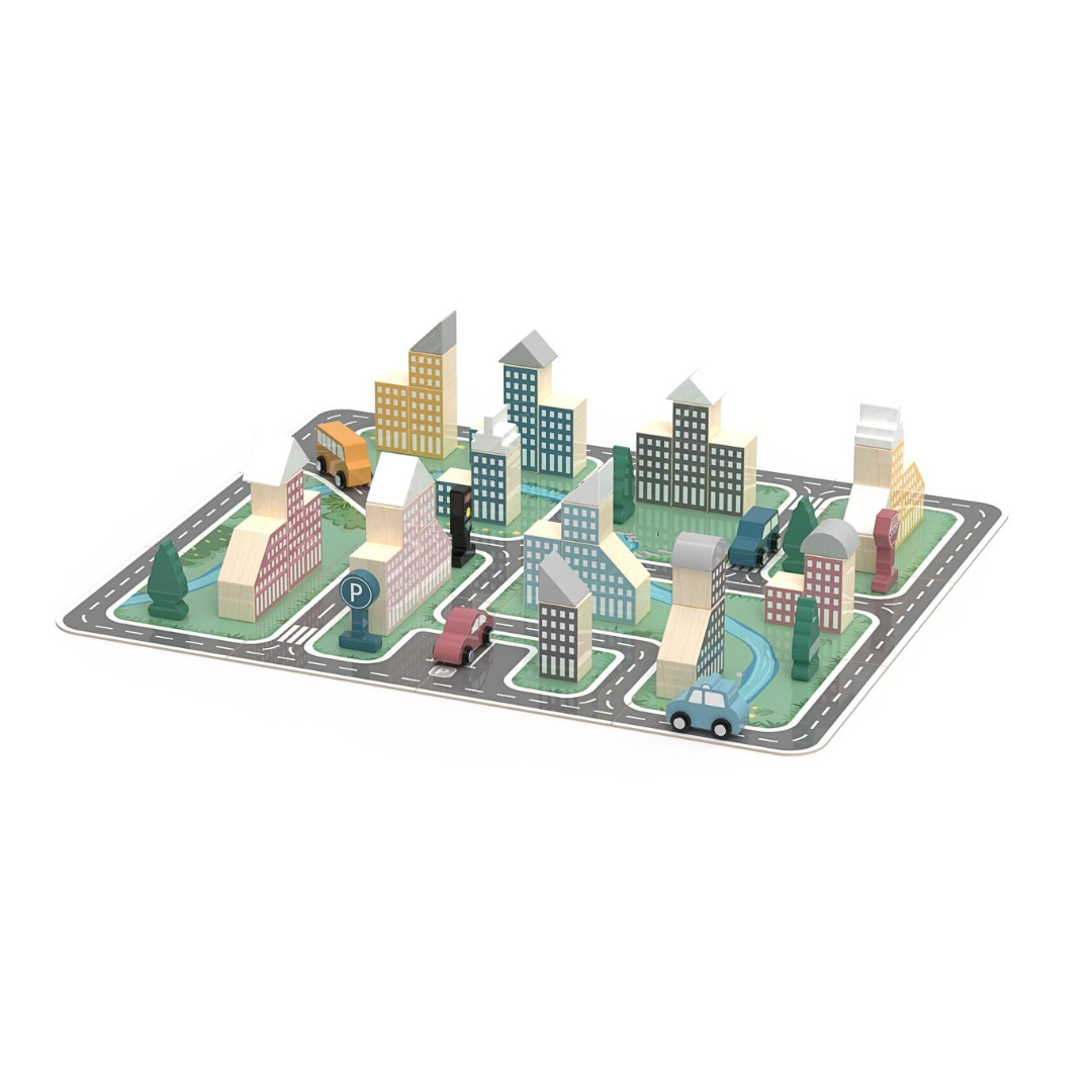 With a stunning wooden playmat puzzle board full of roads for the little wooden cars (that are all included) to drive along as they cruise around the absolutely beautiful city your little one has dreamed of, designed and constructed themselves! Each day is different when you are the creator of the town!