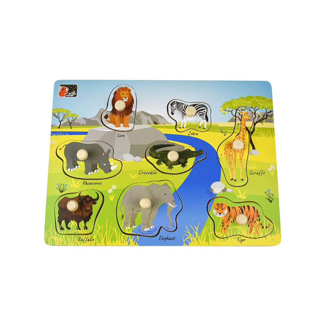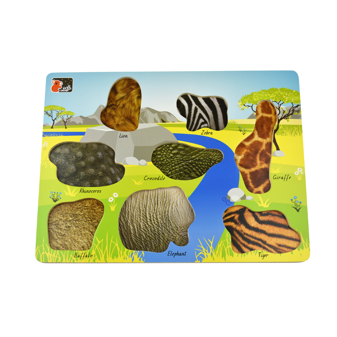 Playing with puzzles stimulates hand-eye coordination, fine motor skills and problem-solving. Additionally, young children can easily grasp the large wooden peg pieces and match the animals with their skin patterns.