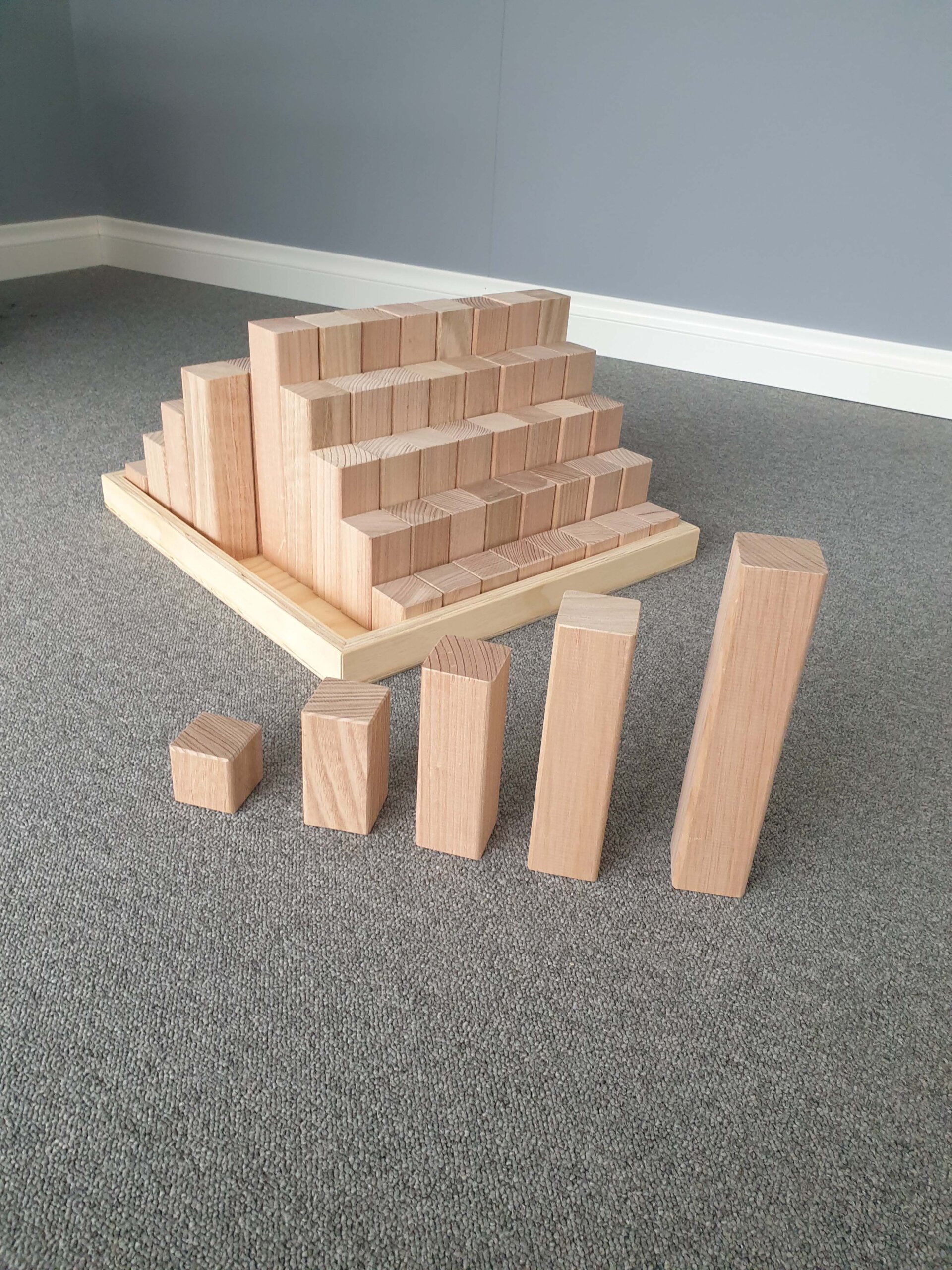 9 x 210x 42mm blocks, 18 x 168x 42mm blocks, 18 x 126x 42mm blocks, 18 x 84x 42mm blocks, 18 x 42x 42mm blocks