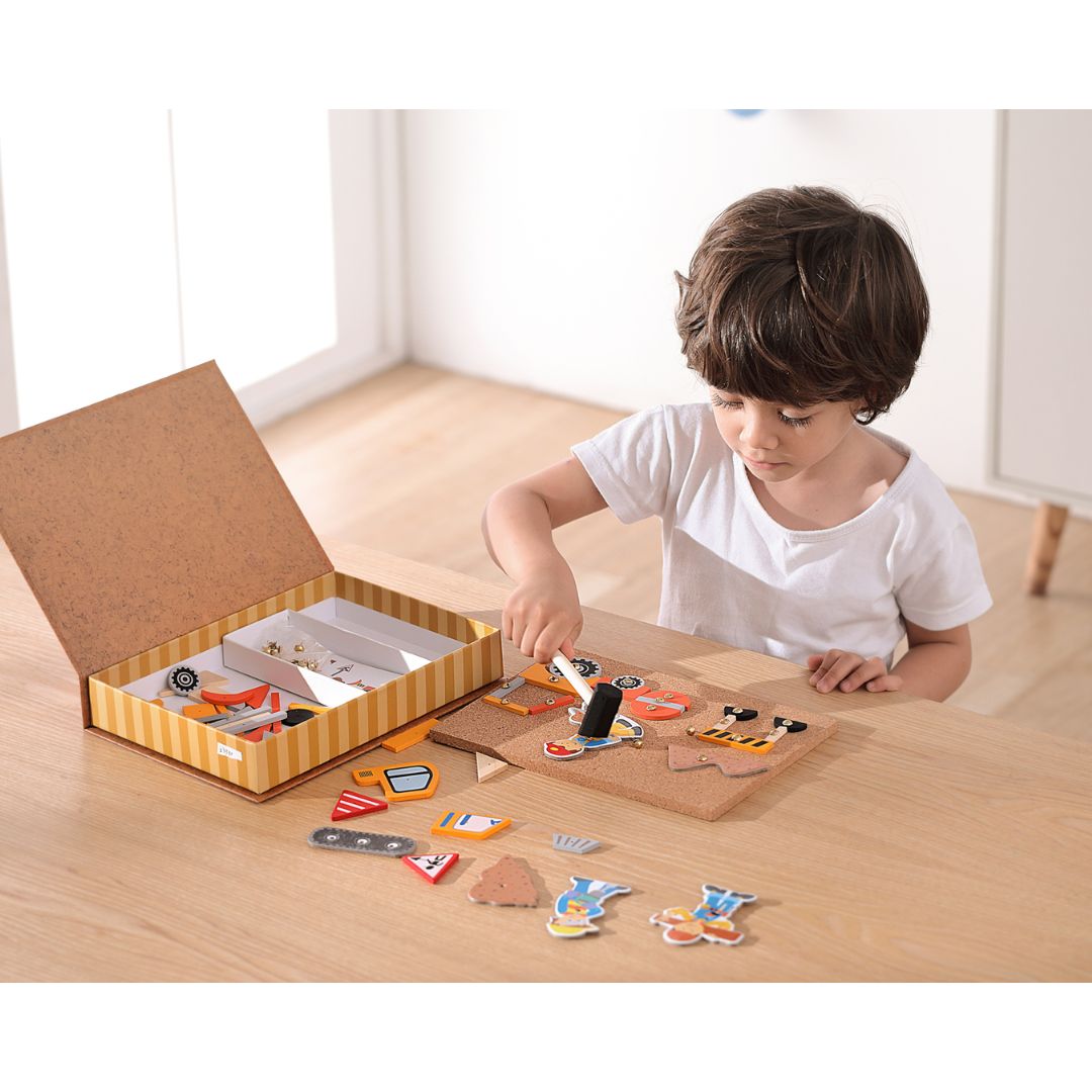 The engineered Tap A Shape playset is sure to keep your child occupied for hours, as they let their imaginations run wild. Make pictures with the wooden shapes, and then hammer them into the cork board with the tacks. Finished your picture? Take out all the pieces and nails, and start all over again!