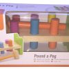 With this Wooden Hammering Peg Bench kids can place the pegs into the holes and hit them through with a hammer, then the bench can be flipped over for more banging fun. The soft rubber rings inside the holes gently hold the pegs in place and give the illusion of real hammering.
