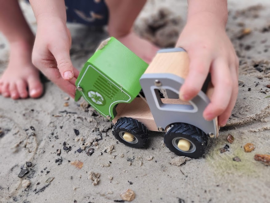 Children can place all their paper scraps and recycling into the back of the truck, and close the lid. The chunky rubber wheels make for an easy drive across rough terrain towards the recycling centre. Reverse the truck and lift up the tray to release the paper, plastic and metal. It is lightweight and just the right size for small hands to manoeuvre or carry around.